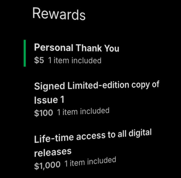 Provide rewards, early access, & special perks for fans that support your project with non-equity investments. These can be tokenized or non-tokenized, providing those that don't qualify to invest a chance to support your work.